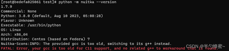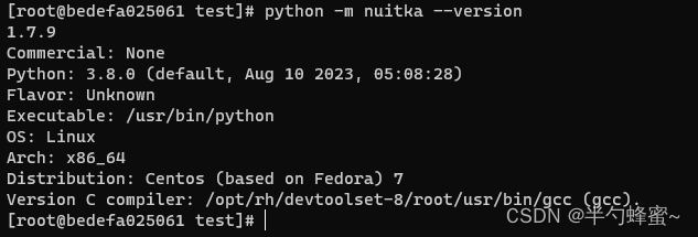 更新完gcc版本之后,我们再通过python -m nuitka --version命令查看一下nuitka版本信息