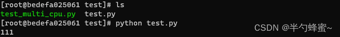 当前文件夹下有test.py文件,我们通过python test.py执行当前的python文件,可以看到能正常执行。