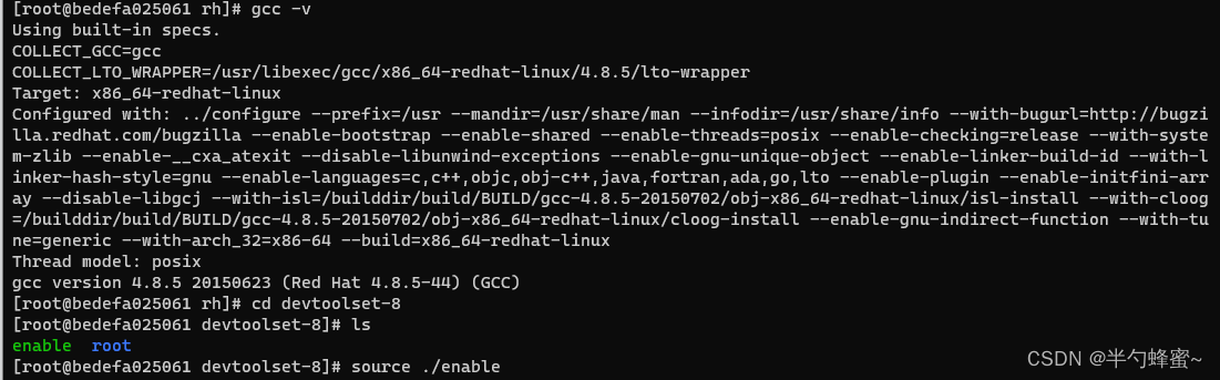 3.激活对应的devtoolset,所以你可以一次安装多个版本的devtoolset,需要的时候用下面这条命令切换到对应的版本