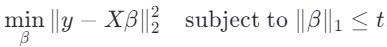 其中 t 是一个超参数,用于限制系数的L1范数。这个约束形式直观地说明了Lasso如何通过限制系数的总大小来实现稀疏性。