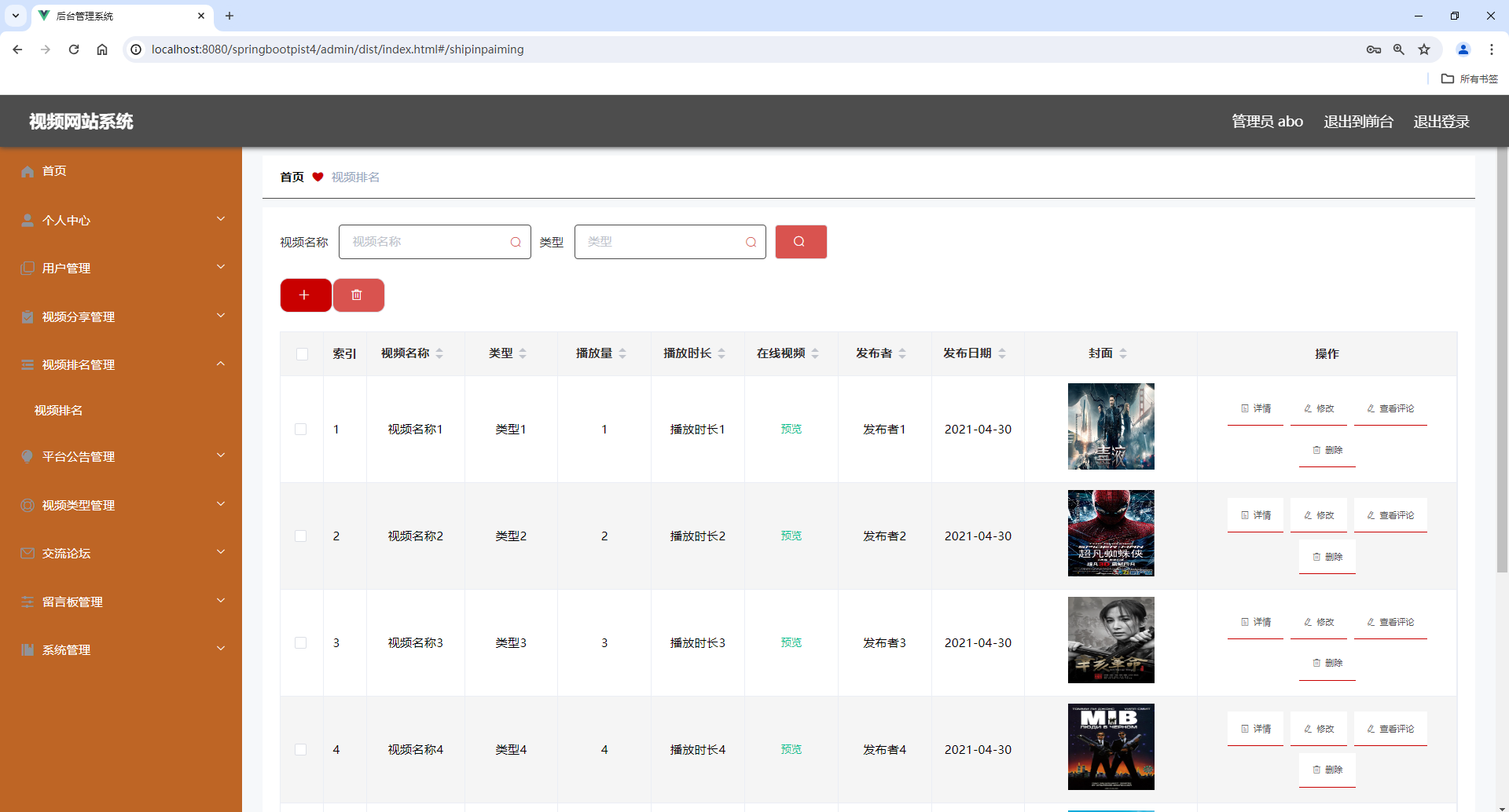 基于springboot的视频网站管理系统