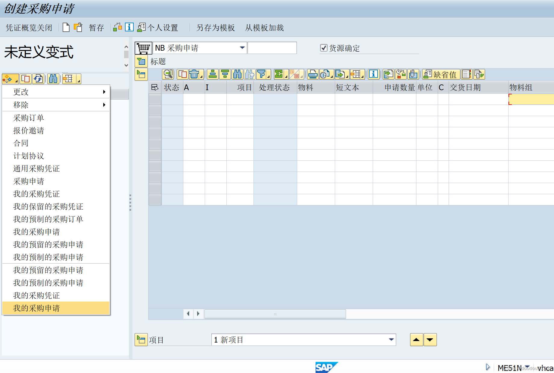 标题2:ME51N-创建采购申请