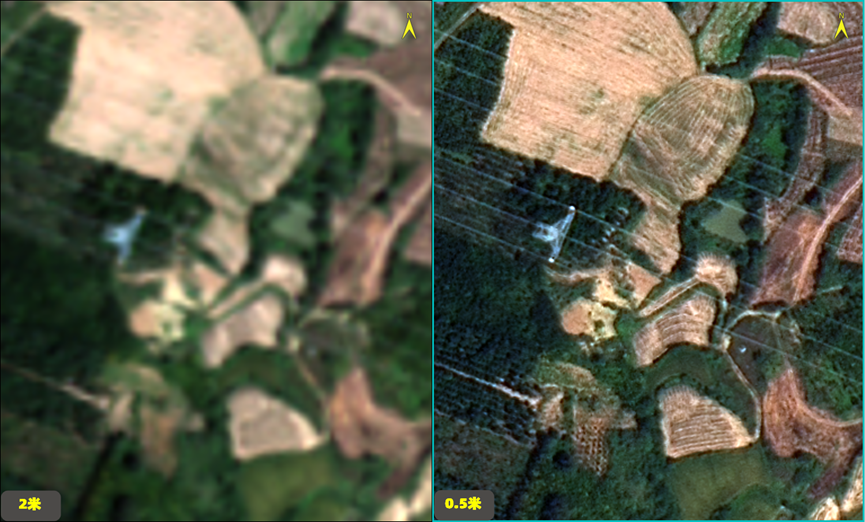 北京三号卫星A星于2021年6月11日,搭载了0.5米全色、2米多光谱(蓝、绿、红、近红外波段)相机,成像宽幅优于23km。