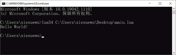 ③ 最后,在开始菜单中找到 命令提示符 然后输入 lua -v ,显示结果如下则说明安装成功:
