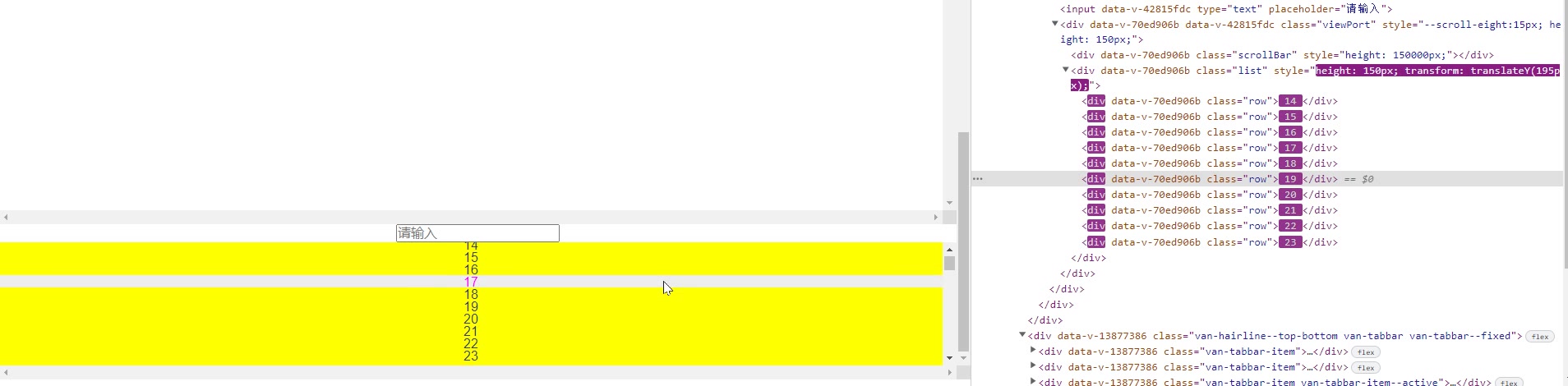 封装一个vue2的虚拟列表 这里我封装了一个简单的虚拟列表的组件,里面包含了 rowHeight:行高、viewCount:显示条数、listItem:每一行显示的内容、listData:需要渲染的整体数据,另外还添加了一个点击向父组件传递信息的方法 onClick。当我们需要很多条数据时,比如一万条时,如果只用v-for的话那么会渲染出一万个dom元素,这样是很消耗性能的,这时我们便可以使用虚拟列表了。顾名思义,就是一个虚假的列表,可能它里面只渲染了20个dom元素,但是却可以通过滚动来展示一万条数据。组件如下,可直接复制。