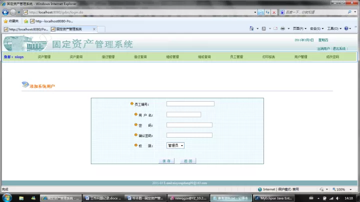 固定资产管理系统是一个单位不可缺少的部分。但一直以来人们使用传统的人工方式管理固定资产的信息,这种管理方式存在着许多缺点,这对于查找、更新和维护都带来了不小的困难。因此,开发一个界面友好,易操作的资产管理软件进行自动化管理变得十分重要。这正是本系统开发的目的和意义。本文所阐述的固定资产管理系统,以浏览器/服务器模式高效地实现了固定资产管理的各项功能,可进行资产的添加,删除、修改、查询、打印报表等功能;还可以对每位职工的添加、删除、修改、查询基本操作;本系统还对权限进行限制,操作员只可对资产和用户进行基本操作,管理员可以为每位员工赋权限。