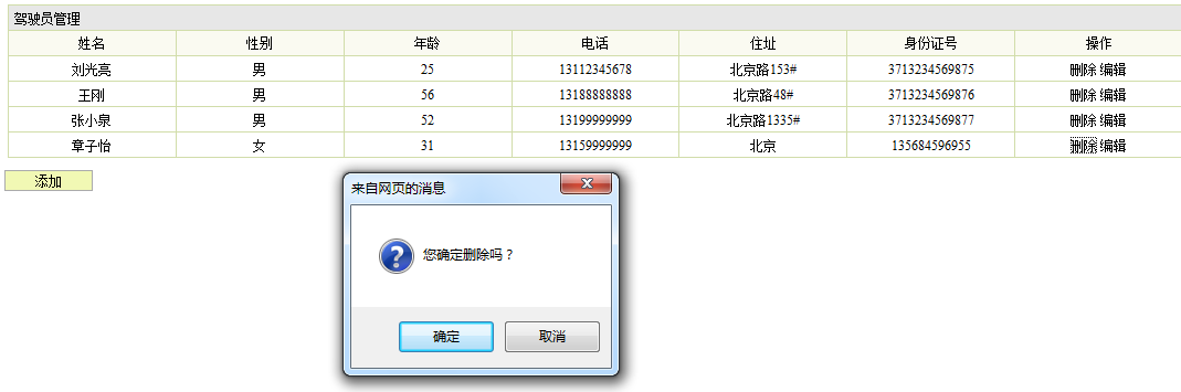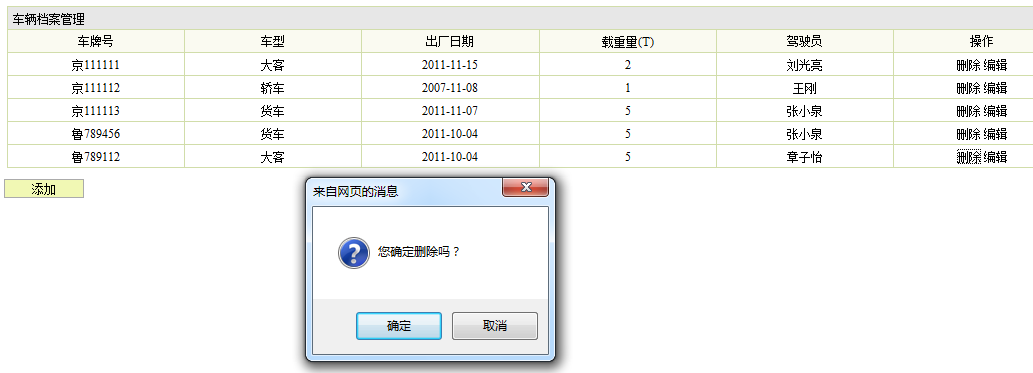 1.描述:先是点击出车信息管理,页面跳转到出车信息管理界面,浏览所有的出车信息,点击要删除的出车信息,点击确认按钮,完成出车删除操作。