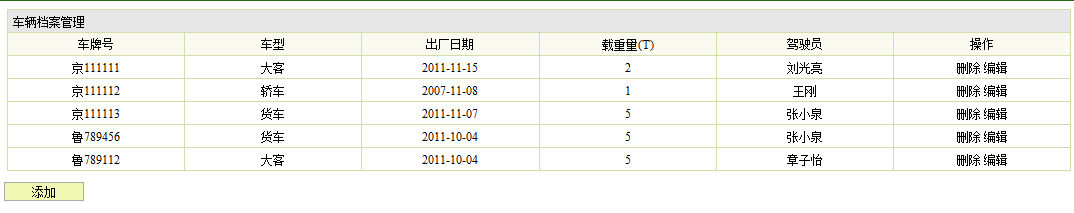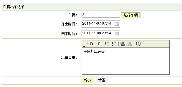 出车信息管理关键代码: