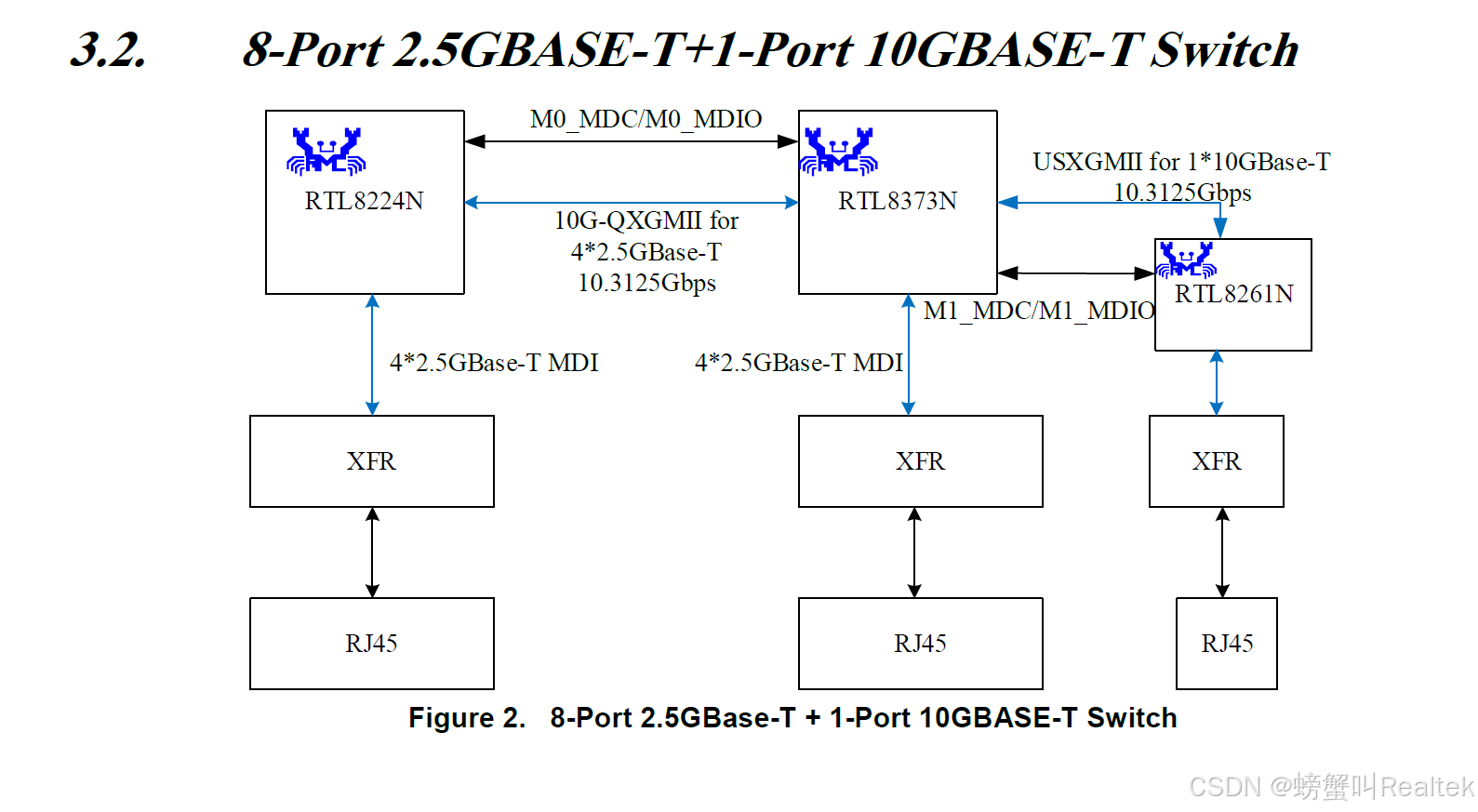 随着WIFI6产品的普及,对于有线网络设备的带宽要求也越来越高,很多朋友就在问我们现在是否有低成本小端口的万兆上行的解决方案,比如常见的形态5*2.5GE+1*10SFP/8*2.5GE+1*10SFP这种形态,碰到这种产品形态我们应该怎么去挑选方案呢?或者说我要5个或者8个2.5G网口+万兆电口上行我们应该怎样选型呢?其实Realtek这两年已经就有成熟的方案,上干货,如下: