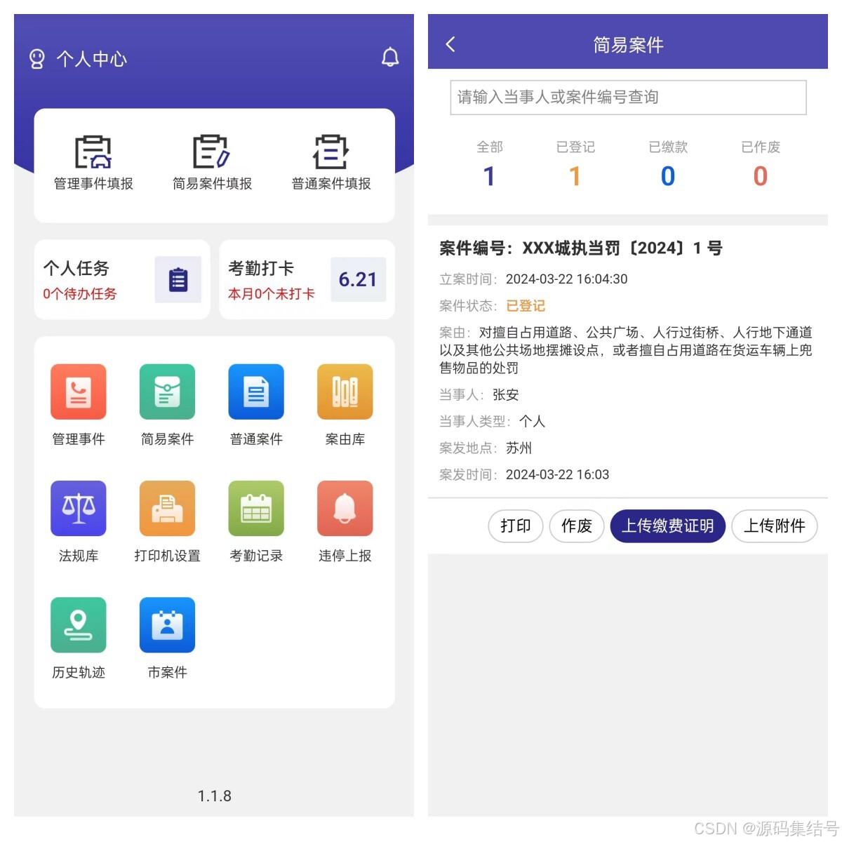 2、移动执法能力:执法人员通过执法APP可以现场办理简易程序案件,快速录入信息,进行地图定位,查询法规,甚至实现文书模板化处理和当事人扫码支付罚款,提高执法效率。