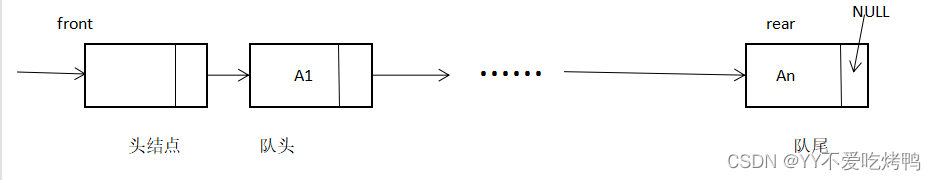 为了操作的方便,我们将队头指针指向链队列的头结点,而队尾指针指向终端结点。