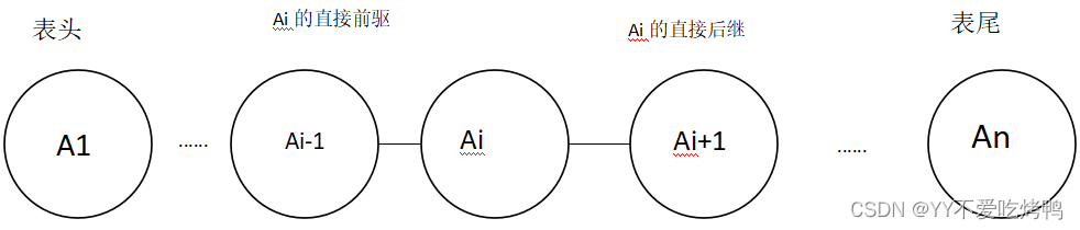 表的起始位置称为表头,表的结束位置称为表尾。线性表中元素ai-1为ai的直接前驱,元素ai+1为ai的直接后继。在一个线性表中,ai有且仅有一个直接前驱,有且仅有一个直接后继。第一个元素无前驱,最后一个元素无后继。