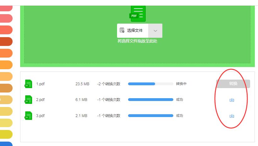 4,文档拆分一般都比较快,稍等片刻,待文档处理完成,显示成功后,单击下载箭头按钮就可以了。