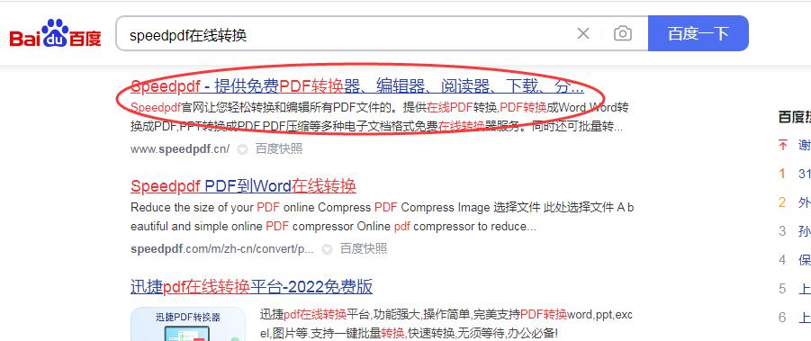 1,首先点开浏览器搜索界面,搜索关键词“speedpdf在线转换”工具找到在线转换页面。