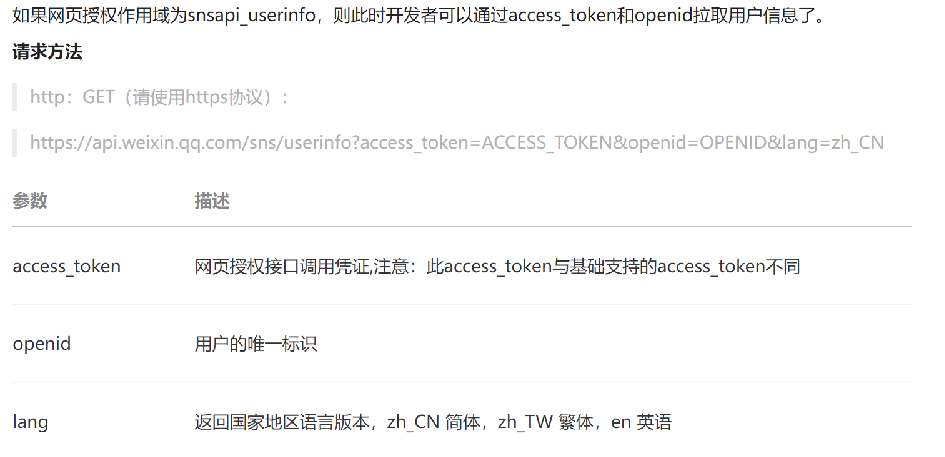实现细节-第四步:拉取用户信息(需scope为 snsapi_userinfo)