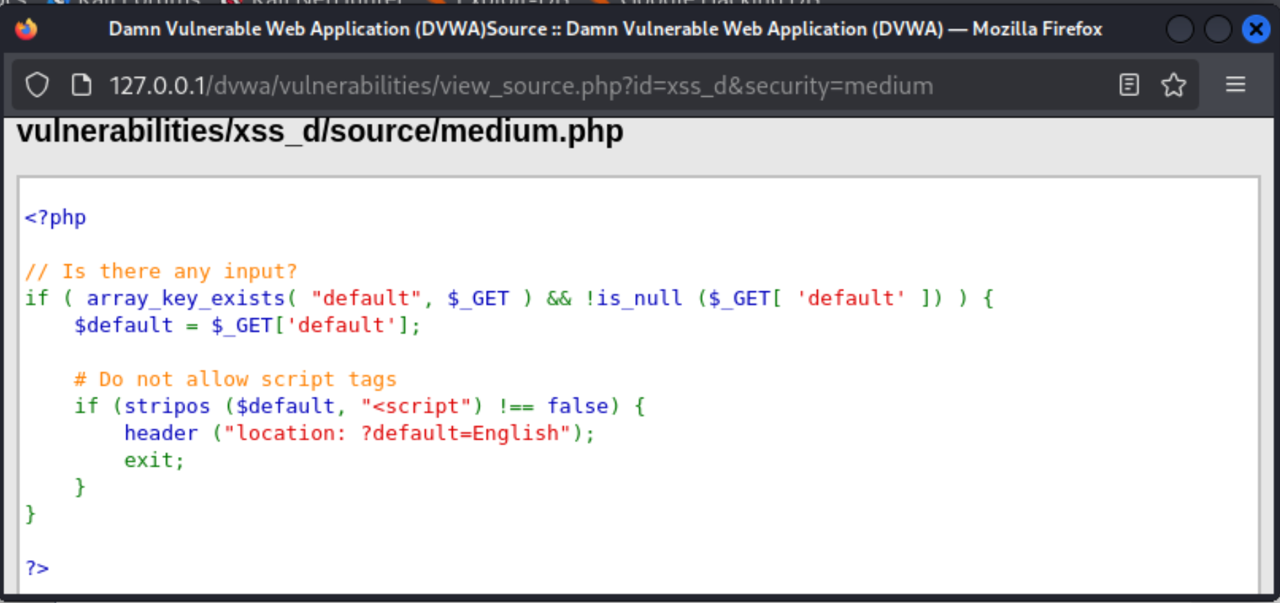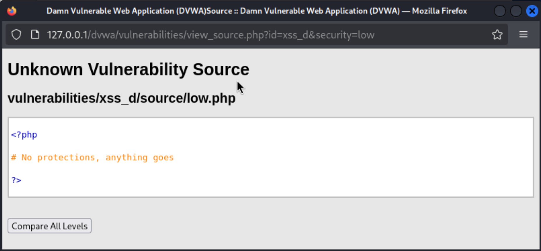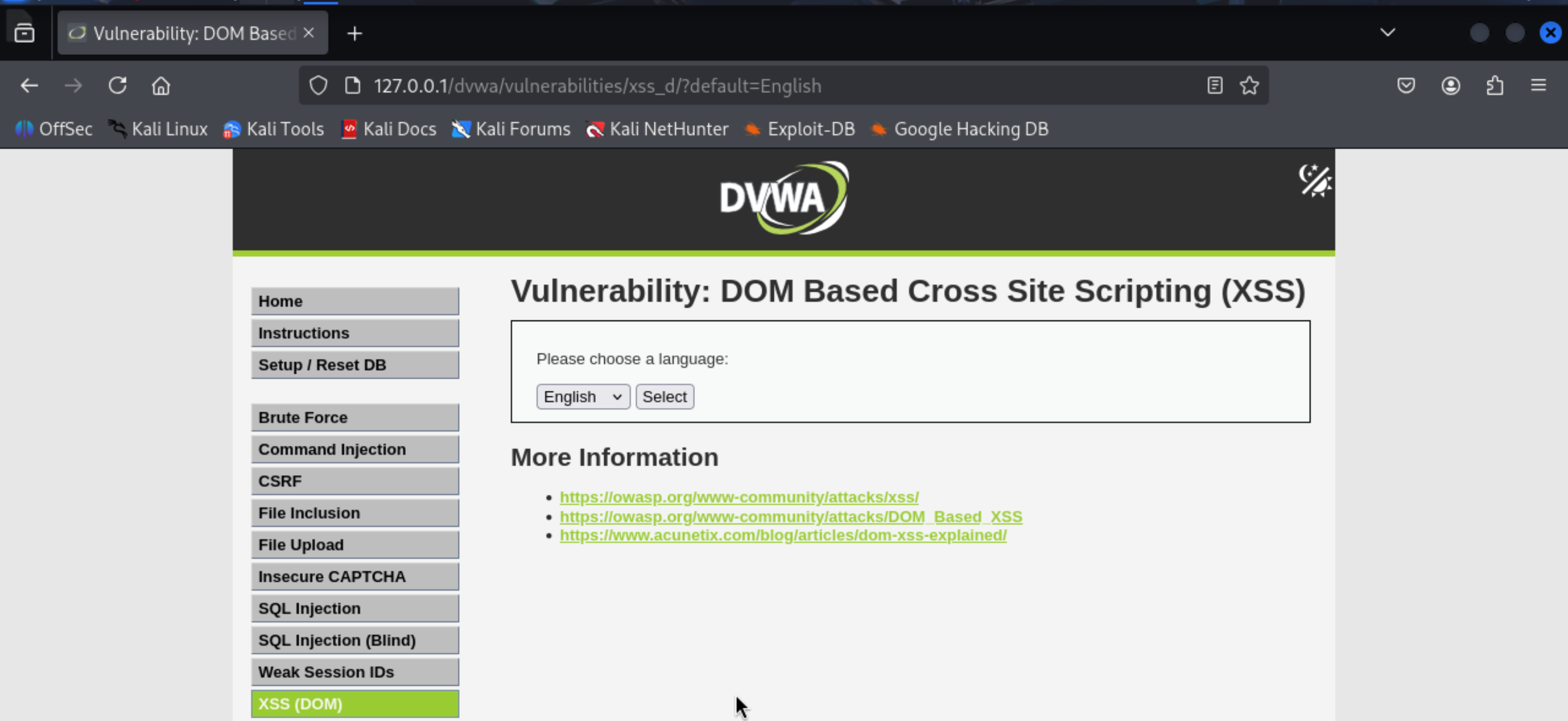 这是DVWA靶场中没有针对DOM型XSS攻击任何防护的网站。