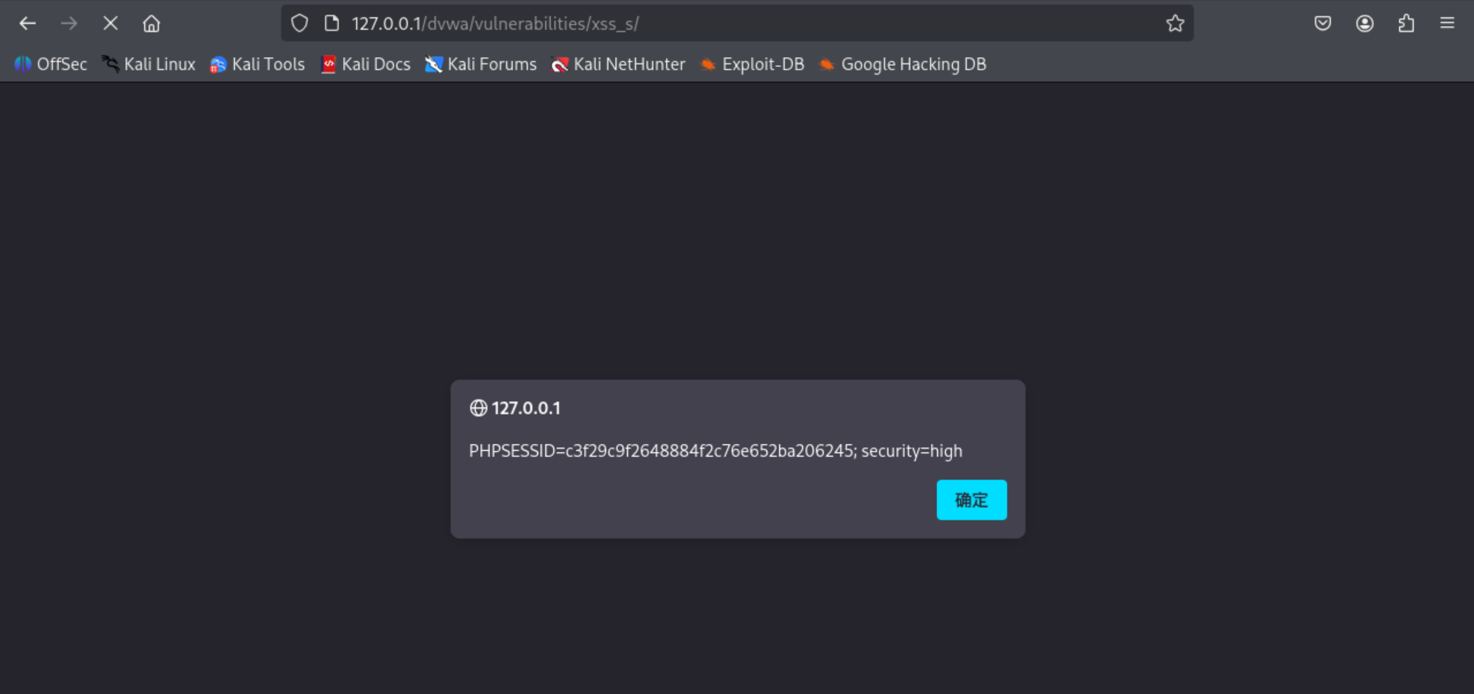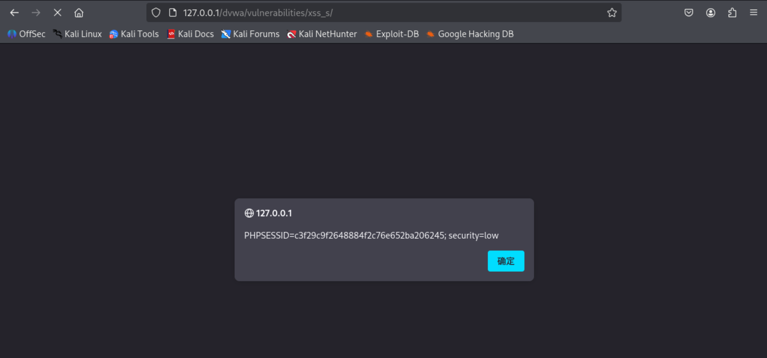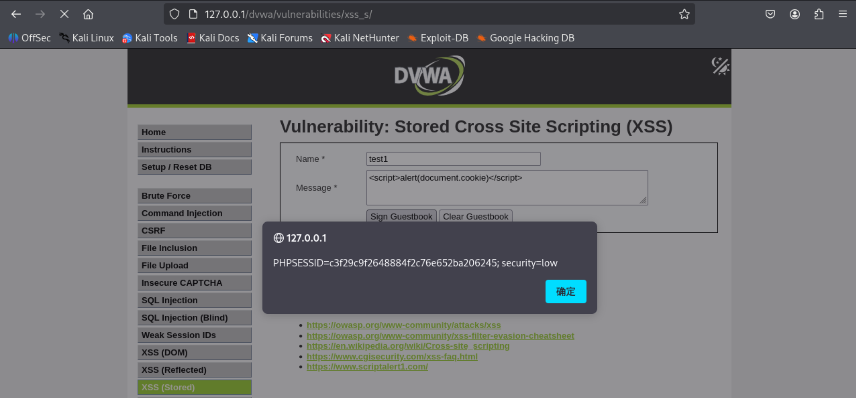 先进入HOME页,再回到XSS(Stored)页面,仍然可以得到cookie,证明存储型XSS攻击成功。
