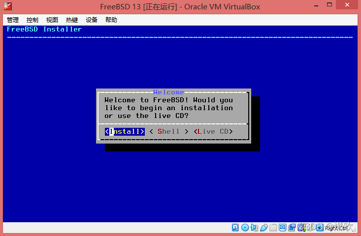 启动虚拟机进入 FreeBSD-13.0-RELEASE-amd64 引导器