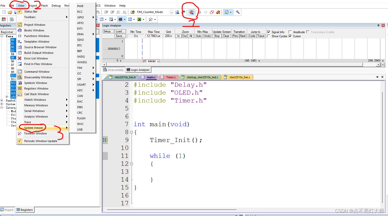 从开始有这个想法,到真的的驱动它,发出我自己想要的颜色,这个过程,我用了三年,中间一只是断断续续的,其中遇见了很多问题,自己摸索真的很难,挺不容易的,我觉得这很值得记录一下ovo!控制流程1、使用定时器1更新中断,触发DMA将WS2812B数组码(格式GGRRBB),转运到定时器1的CCR1寄存器中。2、定时器1的CH1(PA8)输出PWM,控制WS2812B颜色。3、DMA传输完成,触发中断,在中断中,将WS2812_Flag标志位置1,并且关闭定时器1。