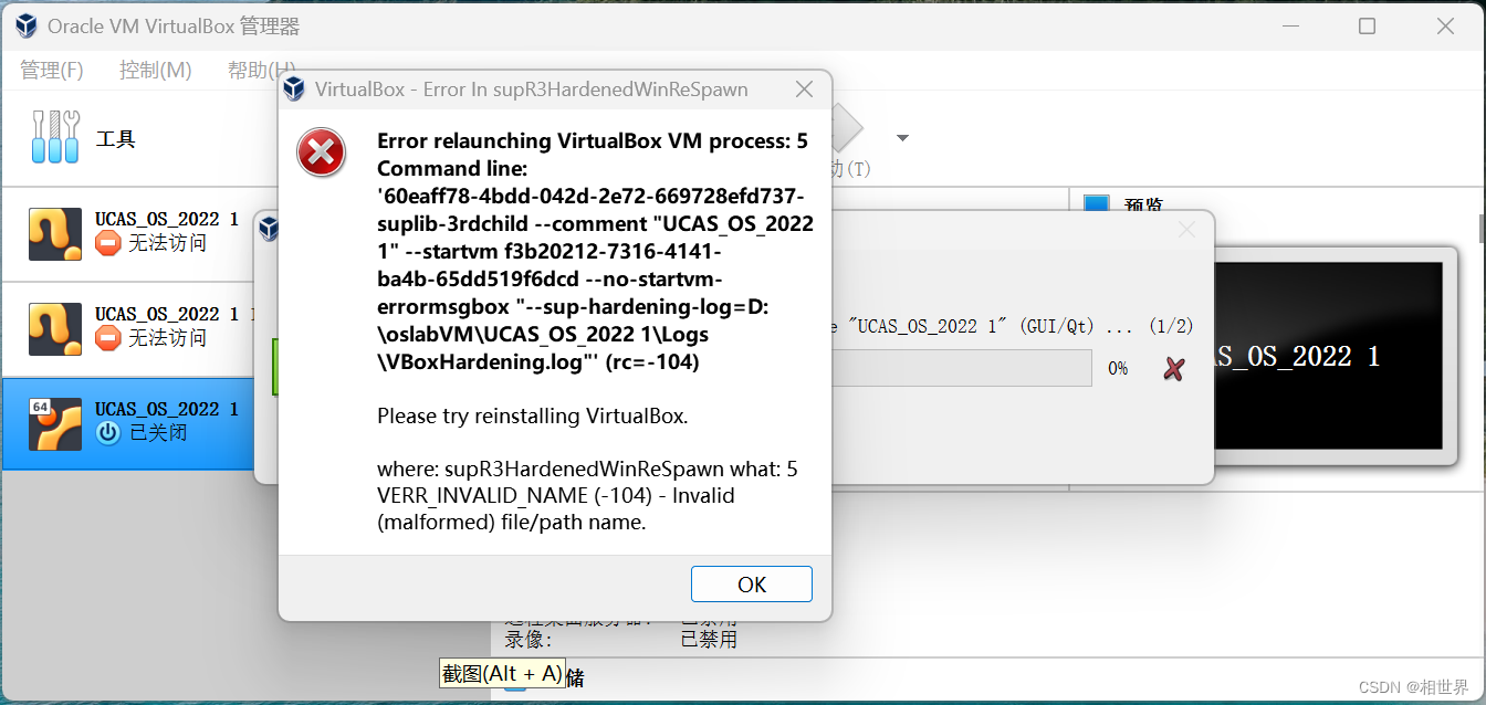 Error relaunching VirtualBox VM process:5 解决方法