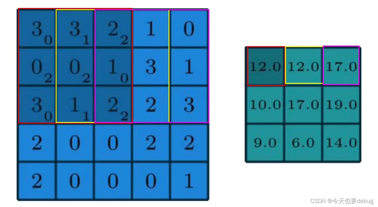 卷积目的:把原始输入的图像转化为一个特征矩阵(特征图),矩阵的每一个数值代表原始图像一个小区域的特征值,在一个小区域也可以提多个特征。