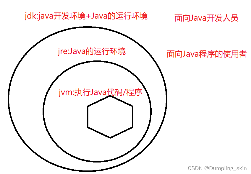 JDK:Java软件开发工具包,用于各种环境下的Java程序开发。是整个Java开发的核心,包含了JRE(JVM+Java类库Java API)和Java工具(Javac)。