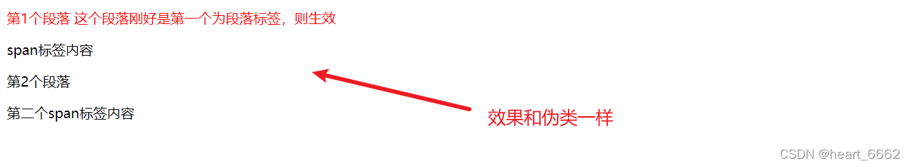 (1)可以看出:first-child伪类的实现,需要满足2个条件,条件1是子元素必须是first-child规定的元素,条件2是子元素必须是父元素的第一个(first)元素,只有2个条件同时满足,first-child伪类便会实现