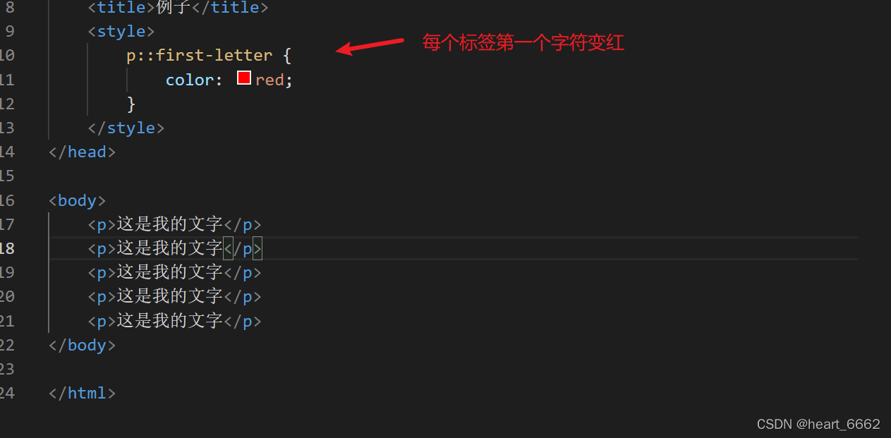 例如我们要在一句话中,给开头的第一个字标红