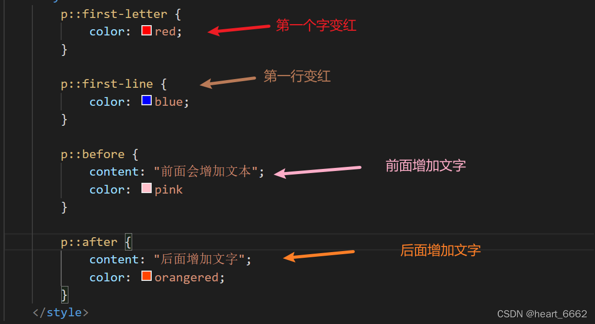 标签::伪元素,随后即可对对应的样式进行生效