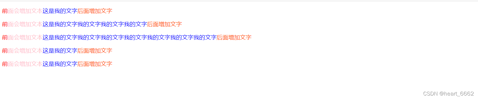 content: "前面会增加文本";