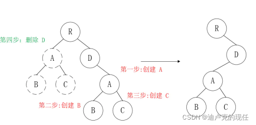 (1)组件 D 在集合(A,B,D)中,但 D的节点已经更改,不能复用和更新,所以需要删除 旧的D ,再创建新的。