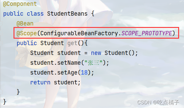 (2) @Scope(ConfigurableBeanFactory.SCOPE_PROTOTYPE)