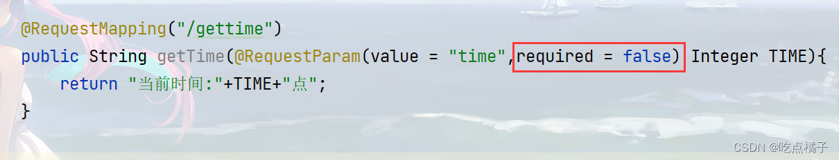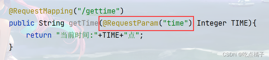 如果前端传递的参数名为time,而后端接收时的参数名为TIME,前后端参数名不一致时,就会出现参数接收不到的情况,此时就可以使用@RequestParam来重命名后端的参数名。