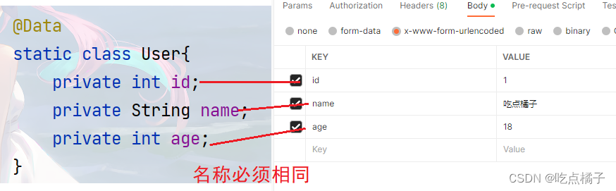(1) 请求中的参数名称和要获取的对象中的属性名称相同;