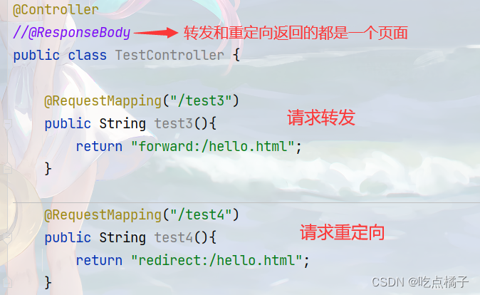 使用@ResponseBody或@RestController注解,返回的就是非静态页面