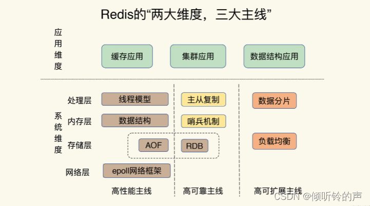 Redis 高可靠性,有两层含义:一是数据尽量少丢失,二是服务尽量少中断。AOF 和 RDB 的持久化保证了数据尽量少丢失,而对于服务尽量少中断,Redis 的做法就是增加副本冗余量,将一份数据同时保存在多个实例上。即使有一个实例出现了故障,需要过一段时间才能恢复,其他实例也可以对外提供服务,不会影响业务使用。