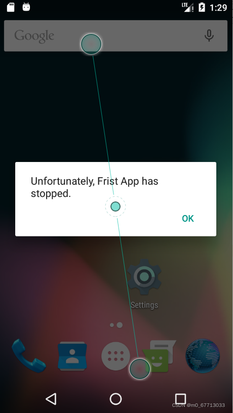 下面这个是在模拟机上显示的,让我们来看一下到底是什么原因吧