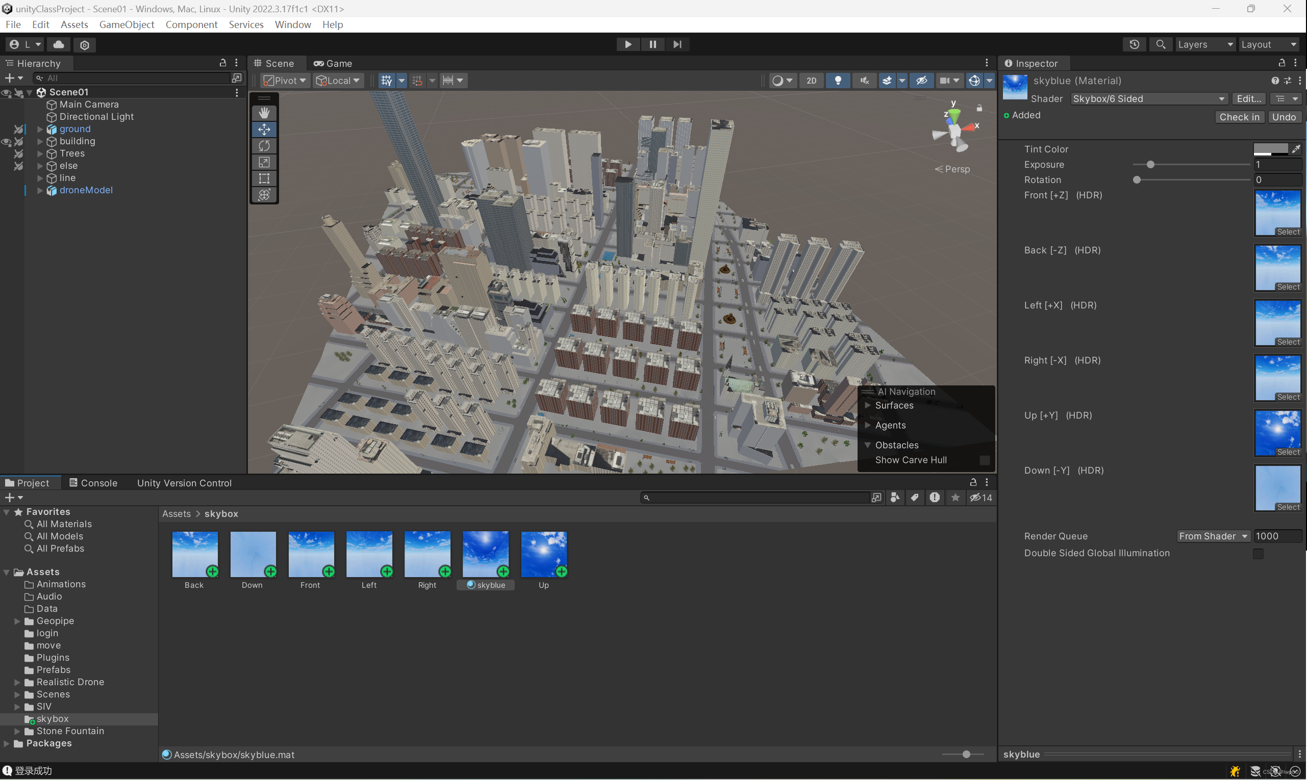本文介绍了如何在Unity中通过制作并应用天空盒改进城市模型的视觉呈现,包括步骤1的天空盒制作,以及步骤2中的贴图调整和光照设置,最终实现边界清晰且美观的效果。