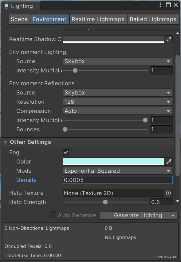 2.贴到模型中,并且调整光照强度、雾的密度等。