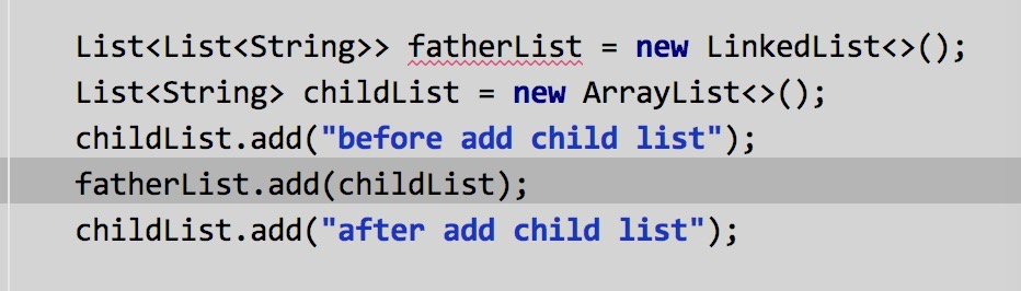 可能很多人对此不屑一顾,心想老子都工作一年了,对这些还不熟悉吗?但实际情况并非这样,JDK中东西全部熟悉了吗?以一个最简单的例子开始,你觉得下图中代码执行完之后fatherList中的元素是什么?