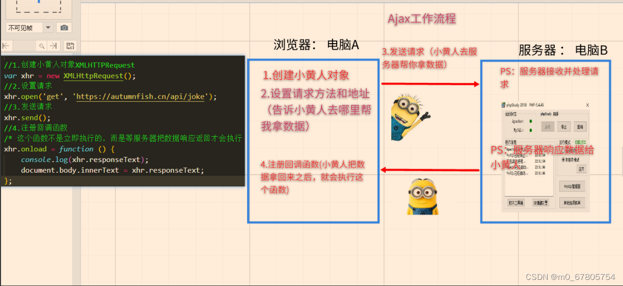 1.创建XMLHttpRequest对象(俗称小黄人)
