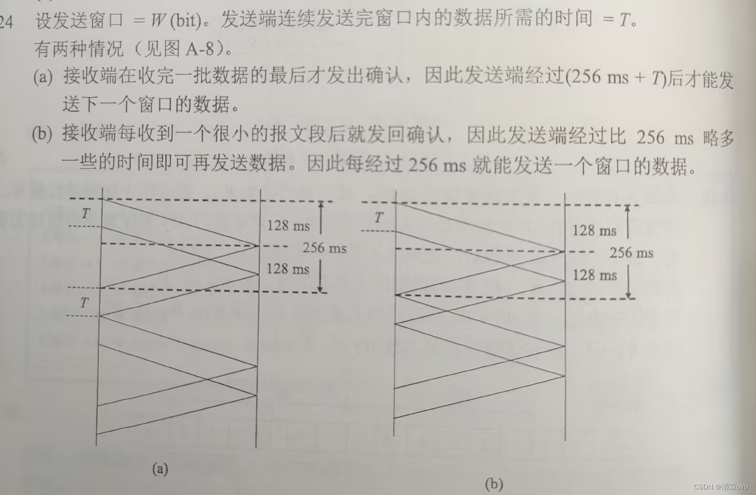 (b)吞吐量 = W / 256ms = 120 kb/s,解出 W ≈ 30720bit ≈ 3840B