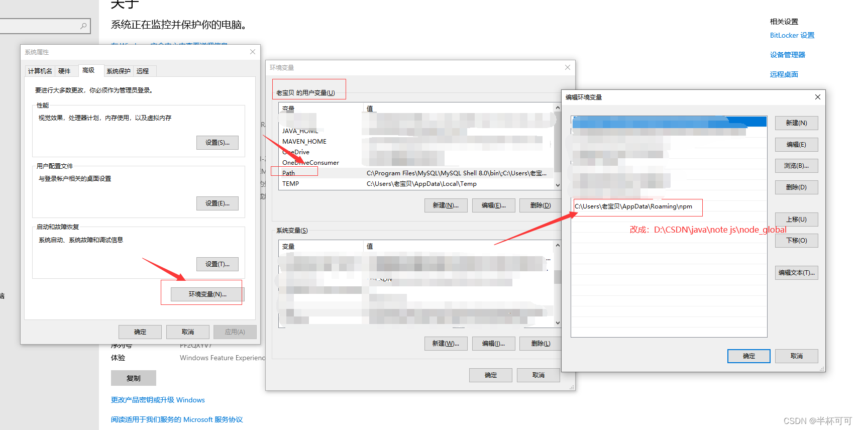 变量值:D:\CSDN\java\note js\node_global\node_modules