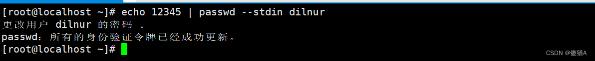 #免交互修改密码,这样不需要输入两次密码确认。echo是打印的意思,有结果输出给passwd命令来修改dilnur用户的密码