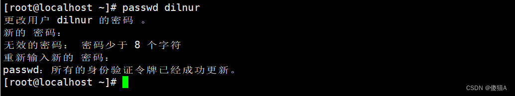 [root@localhost ~]# passwd dilnur