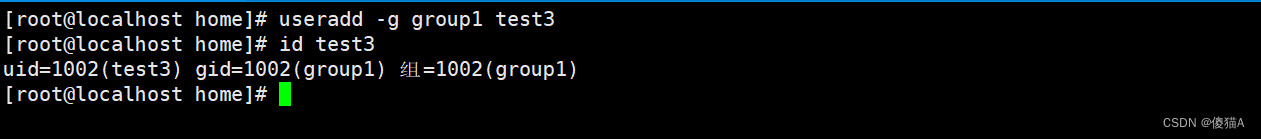 uid=1002(test3) gid=1002(group1) 组=1002(group1)
