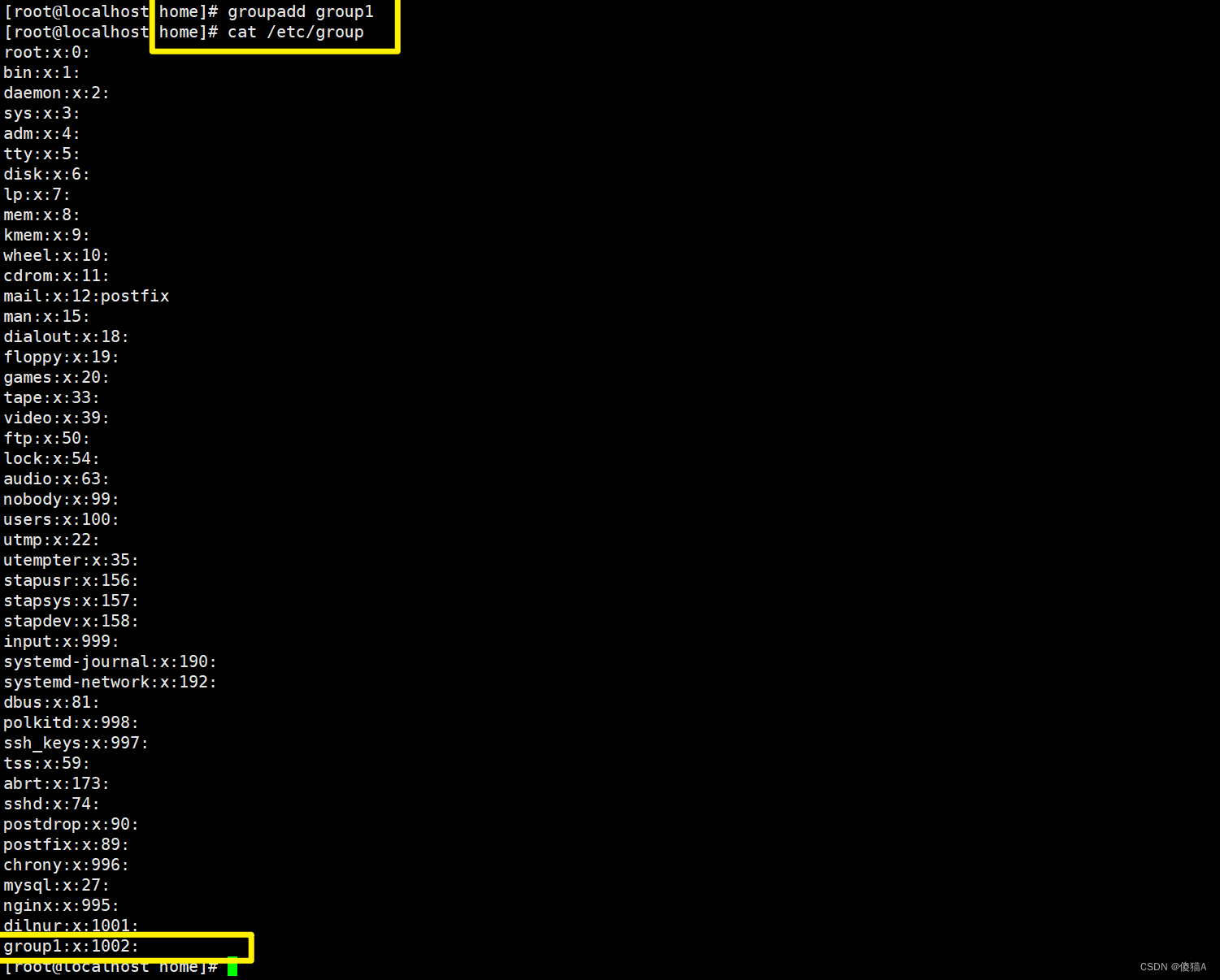 groupadd group1 # 创建一个group1组