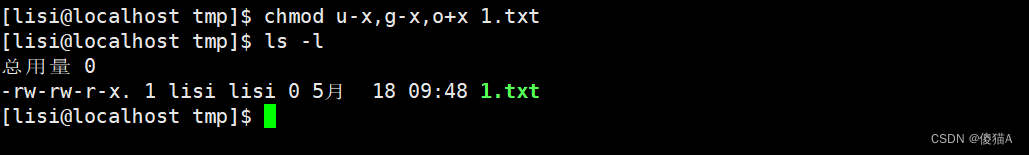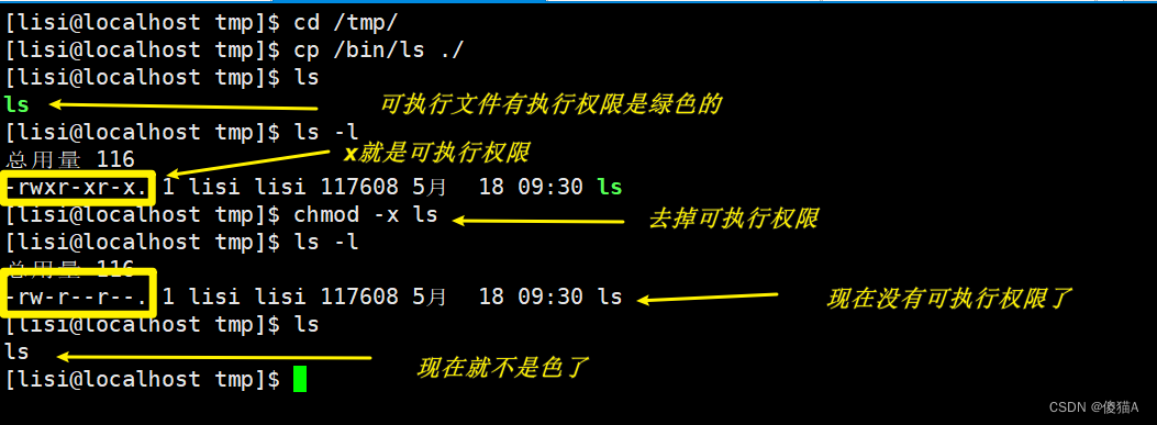[lisi@localhost tmp]$ chmod -x ls