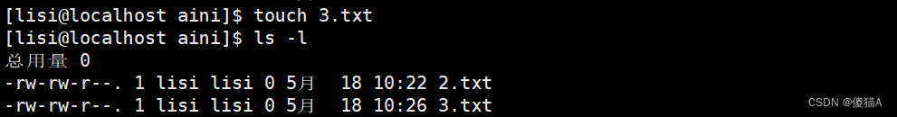 [lisi@localhost aini]$ touch 3.txt